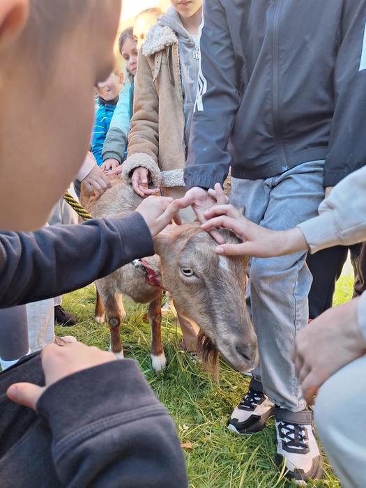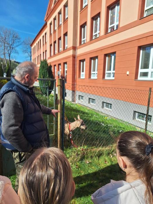 V mezičase jsme měli možnost se podívat na živou kozu, kterou k nám přivedl otec naší kolegyně, Mgr. Hany Levové, a zároveň nám o ní poutavě vyprávěl. Dozvěděli jsme se něco nového o jejím chovu i o tom, jak může být součástí udržitelného způsobu života.
