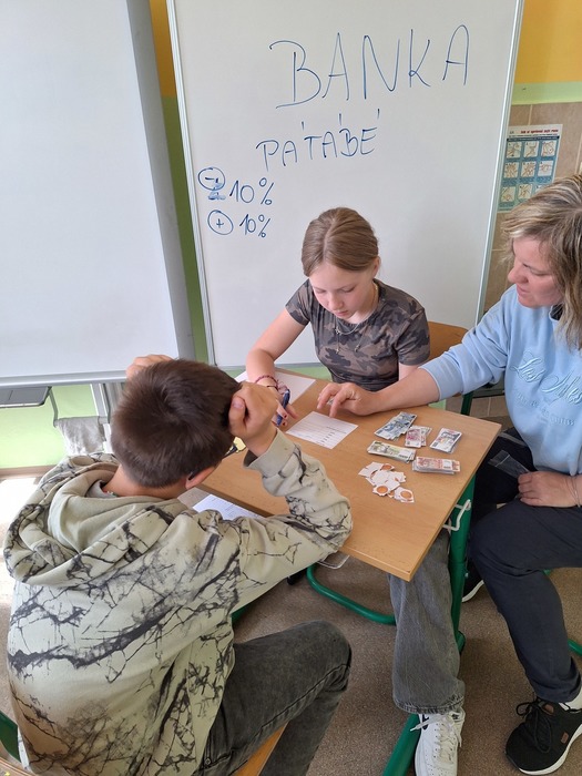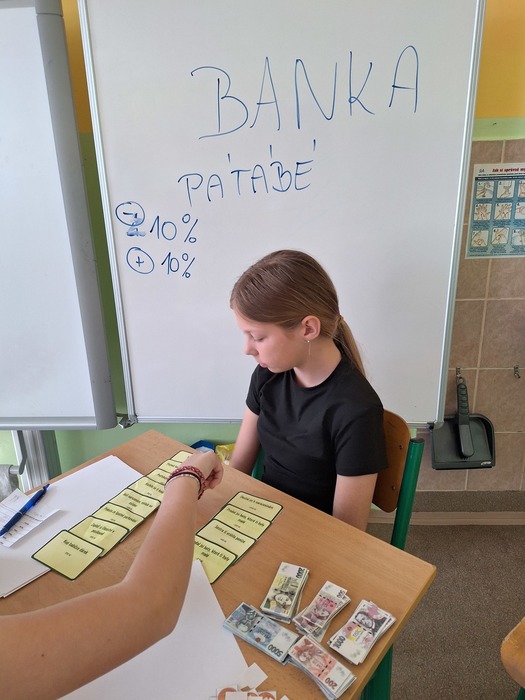 Zvláštním prvkem hry byla i naše třídní bankéřka – jedna žákyně, která měla na starosti „banku“ a pomáhala ostatním navrhovat vhodná řešení jejich finanční situace. Děti se tak naučily nejen hospodařit, ale i radit si navzájem a přemýšlet nad svými rozhodnutími.