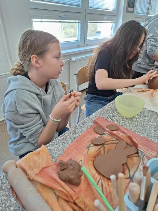 Dnes jsme s našimi žáky strávili krásné dopoledne na keramické dílně, kde jsme společně vytvořili velikonoční zajíčky. Všichni se nadšeně pustili do modelování z hlíny a pod vedením lektorky se začali postupně učit základní keramické techniky. Každý si vytvořil svého zajíčka. Děti si užily spoustu legrace a zároveň rozvíjely svou kreativitu a jemnou motoriku.