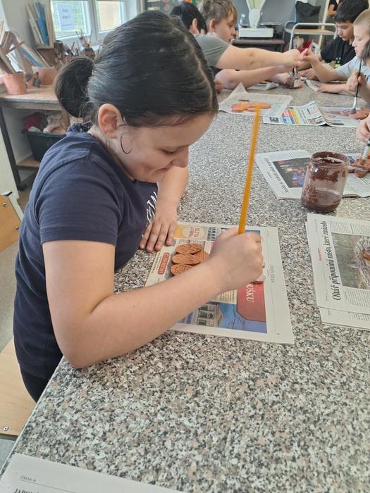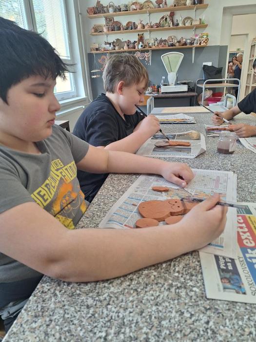 Dnes jsme se s dětmi vydaly na keramiku, kde jsme se pustily do glazování výrobků, které jsme si vytvořily před třemi týdny. Každý si pečlivě vybral barvy a s velkým nadšením se pustil do práce. Atmosféra byla pohodová a tvořivá – děti si to opravdu užily.