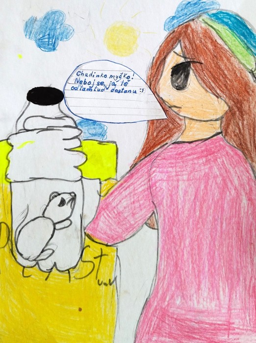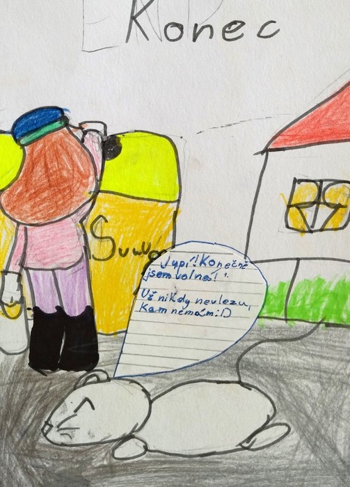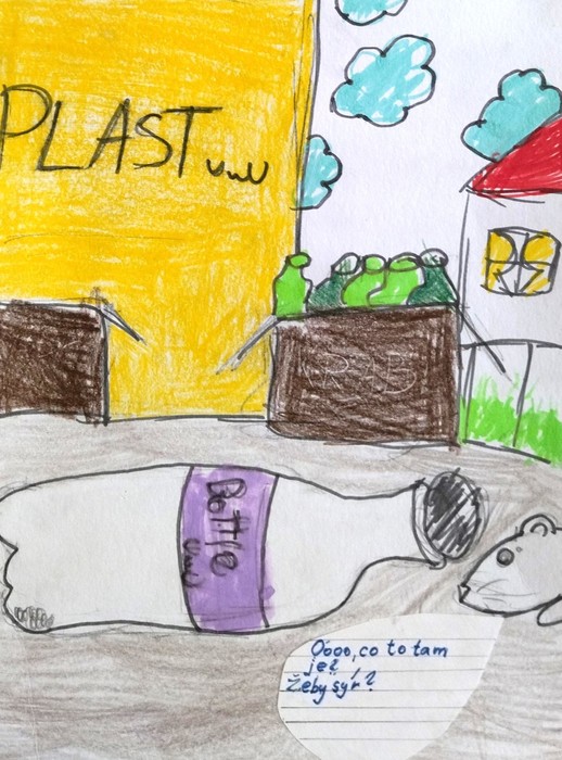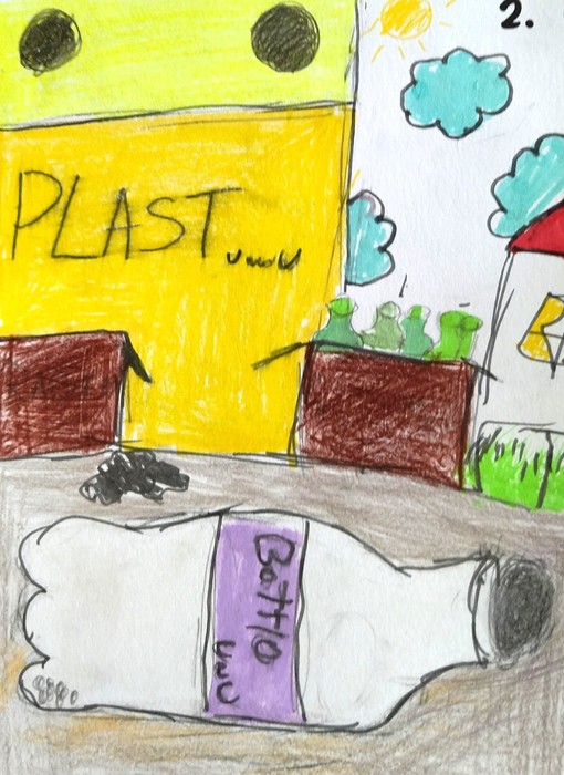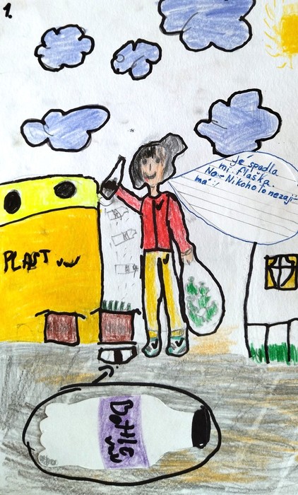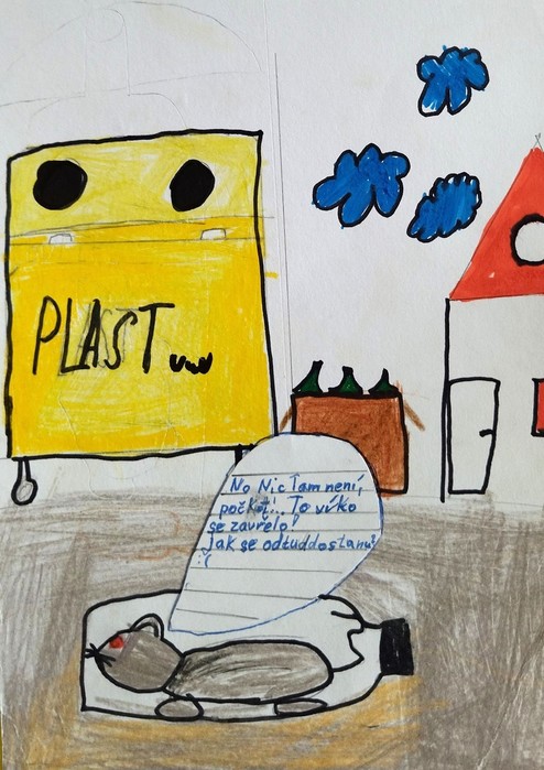 Úvod > Stránky tříd 25/26 > Archiv třídy > Rok 2022/2023 > 5.A > Nástěnka 5. A > Malovaný příběh - U kontejneru