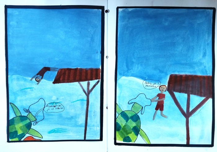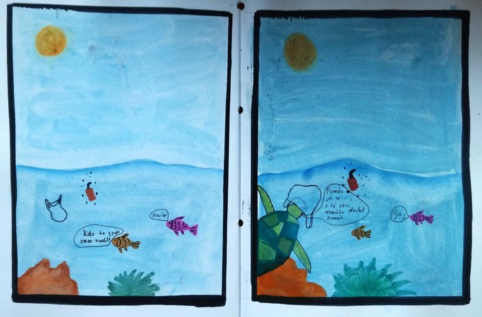 Úvod > Stránky tříd 25/26 > Archiv třídy > Rok 2022/2023 > 5.A > Nástěnka 5. A > Malovaný příběh - V moři