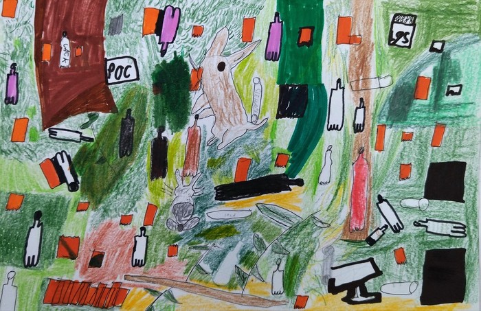 Úvod > Stránky tříd 25/26 > Archiv třídy > Rok 2022/2023 > 5.A > Nástěnka 5. A > Malovaný příběh - Ze skládky