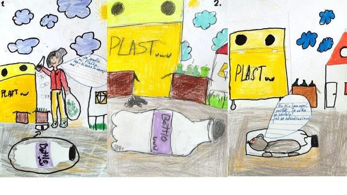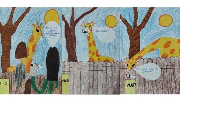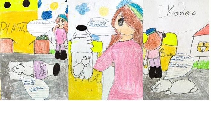 Žáci z 5. A s p. učitelkou Fajtovou se proměnili v Robinsony a Robinsonky a vytvořili Vzkaz v láhvi. Bylo to poselství, které mělo přinášet zprávu o tom, jak s ohledem na životní prostředí máme správně zacházet s plastovými obaly, jak a proč je třídit a jak se recyklují. S touto problematikou se děti seznámily v naučném videu a prodiskutovaly téma s paní učitelkou. Poté se pustily do tvorby a pod jejich rukama vznikly moc pěkné komiksy. Posuďte sami.